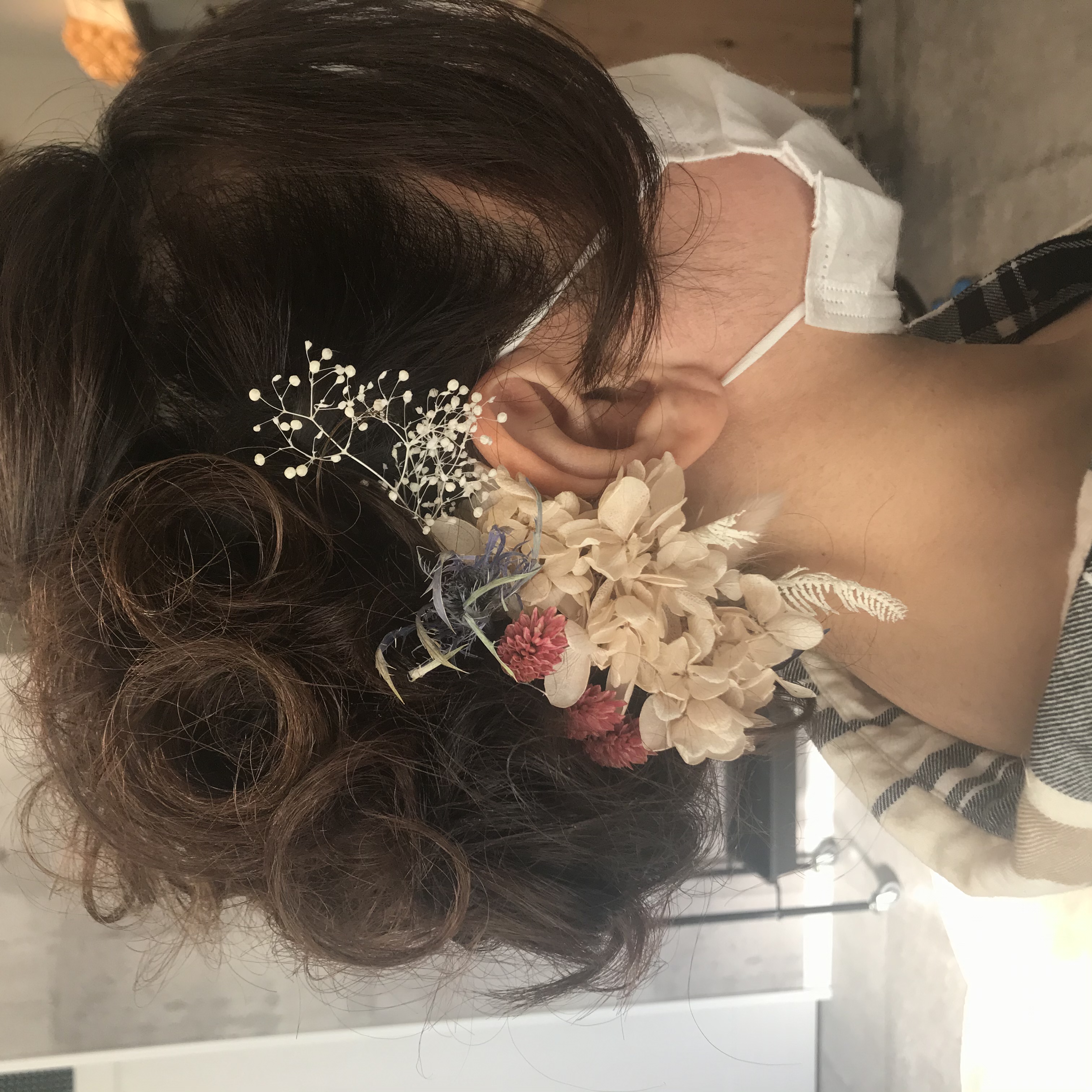 髪飾りはドライフラワーを今回は